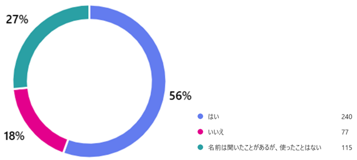 • 使用したことがない:全体の18%/聞いたことはあるが利用したことがない:27%
