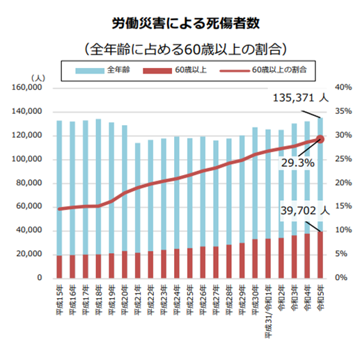 とりわけ、転倒災害や腰痛による労災事故は、高年齢労働者に多く見られる傾向があり、腰痛・身体機能低下・体力差への配慮を前提とした予防的な取り組みが求められています。こうした背景から、労災予防 × 健康経営 × シニア対策を同時に進めることが、今後の企業価値向上にもつながっていきます。